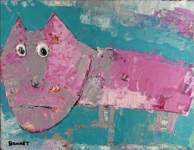 « Chat rose », huile sur toile, 27 x 35 cm, 2010