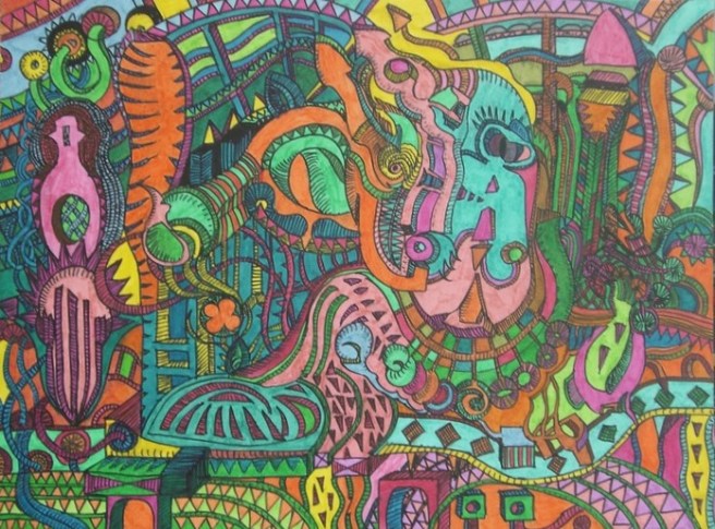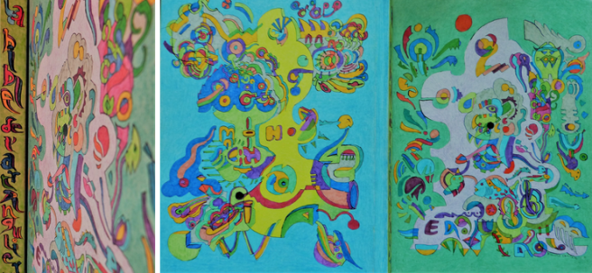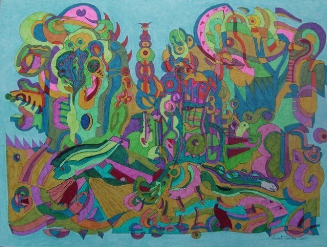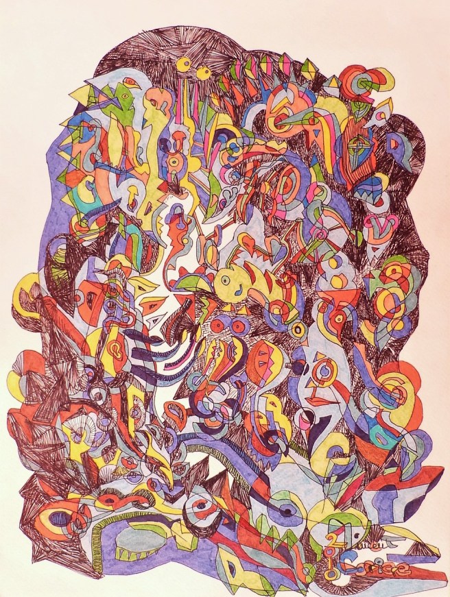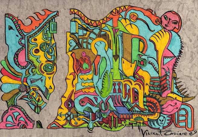 La Bible de l’Art Singulier 2010 – 2011, exposition « Les Métamorphosées » à la Halle Saint Pierre. Encre de Chine, feutres à encre, crayons et fine couche de vernis. Exemplaire unique.Stylo noir, feutres à encre et crayons de couleur sur papier 300 g, 30,5 x 40,5 cm, 2010Encre à pigment (feutre pointe fine) et feutres sur papier 220 gr, 29,7 x 21 cm, 2010Feutre posca noir et feutres permanents de couleur sur papier 340 g, 24 x 32 cm, 2009Feutres posca et aquarelle sur papier 340 gr, 24 x 32 cm, 2009Encre et feutres sur papier 300 gr, 30 x 40 cm, 2010Encre de Chine, feutres et crayons de couleur sur papier 300 gr, 30 x 40 cm, 2010Encre de Chine et feutres sur papier, 14,9 x 21 cm, 2009Acrylique et encre de Chine verte sur carton toilé rigide, 25 x 34 cm, 2009Encre de Chine et feutres sur papier 340 gr, 24 x 32 cm, 2009Encre de Chine et feutres permanents sur papier 220 gr, 14,9 x 21 cm, 2009Encre de Chine et feutres sur papier découpé, 21,5 x 31 cm, octobre 2009 – couleurs 2010Encre – rotring – et feutres de couleur sur papier 220 gr, 11,3 x 21,5 cm, 2009Encre de Chine sur papier 300 gr, 20 x 15 cm, 2009Feutre posca sur papier 340 gr, 24 x 32 cm, 2009« Avant le langage », encre de Chine et aquarelle sur papier 300 gr, 20 x 40 cm, 2009Feutre posca sur papier 340 gr, 24 x 32 cm, 2009Feutre posca sur papier 340 gr, 24 x 32 cm, 2009Encre de Chine sur papier 220 gr, 14,9 x 21 cm, 2009