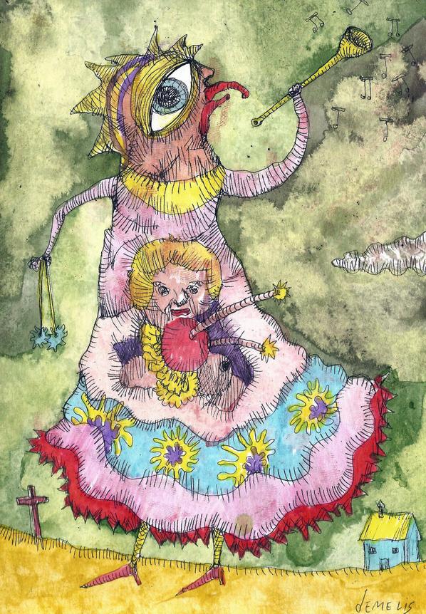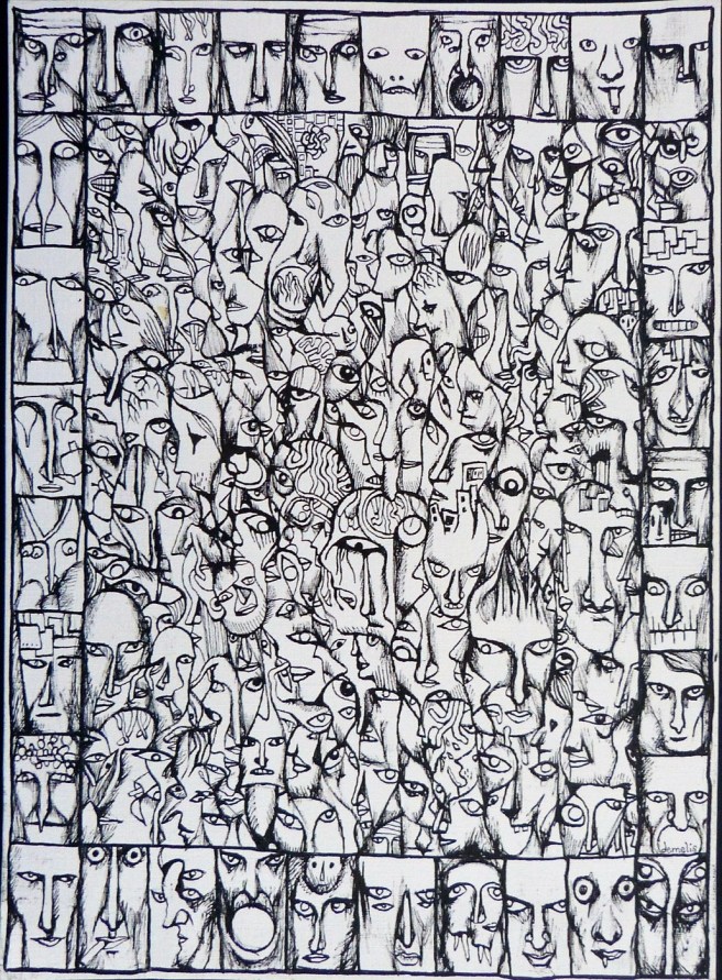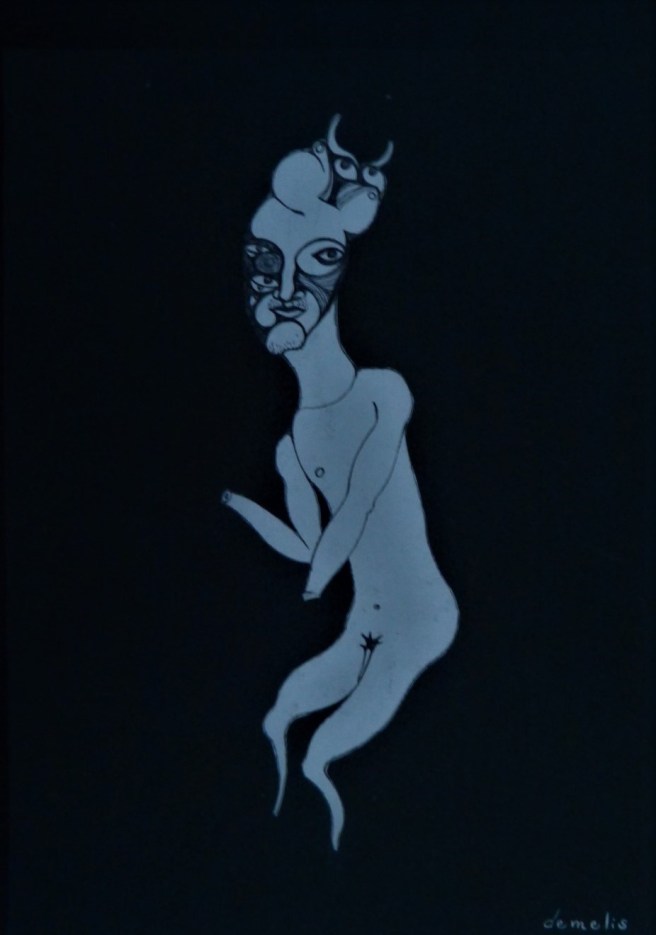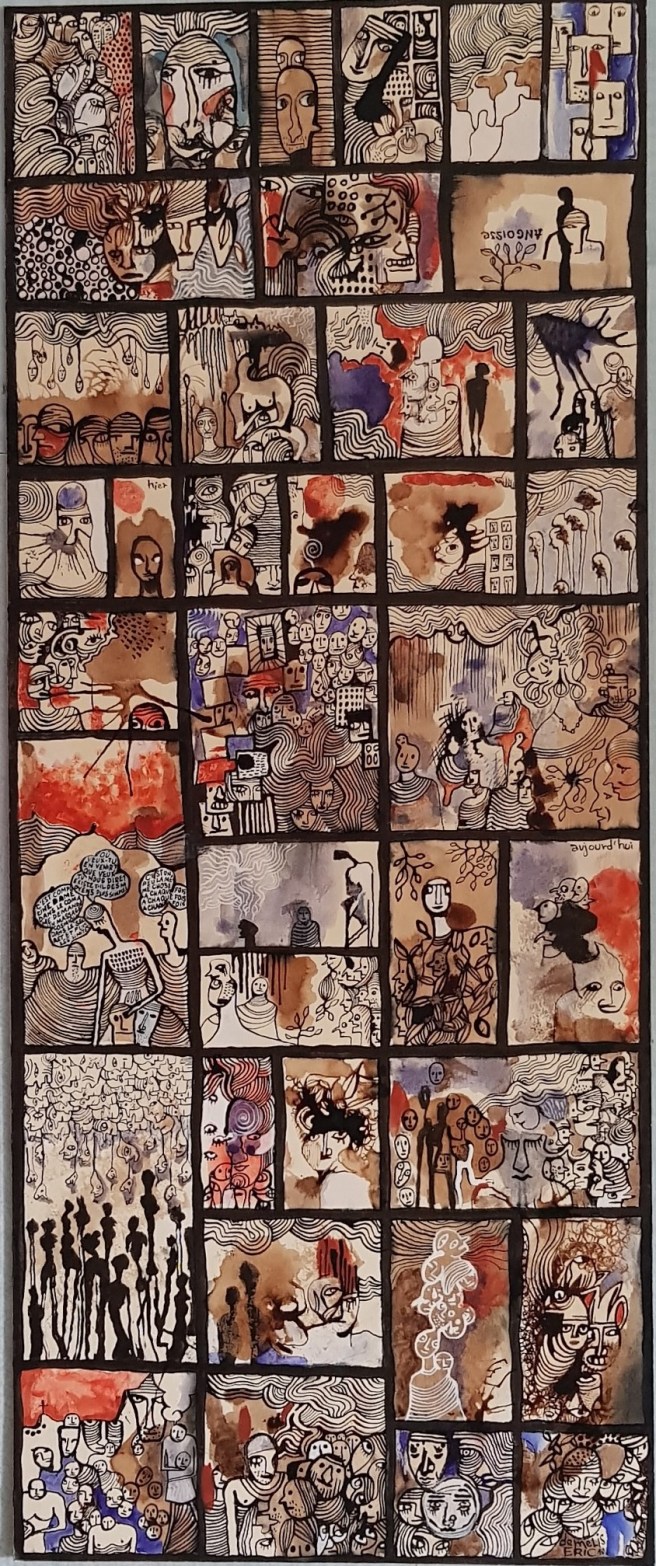 « La Musicienne », techniques mixtes sur papier 200 gr, 21 x 15 cm, 2016Sans titre, encres sur carton, 58 x 24 cm, 2010« Même en plein air », encre sur papier, 30 x 30 cm, novembre 2010« Monsieur N° 64 », gouache sur papier, 30 x 30 cm, 2007« L’usurpateur », encre et collage sur papier, 21 x 15 cm