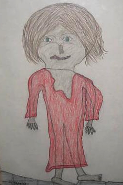 « Barefoot Woman », crayons de couleur et crayon sur papier, 40 x 30 cm, 1993