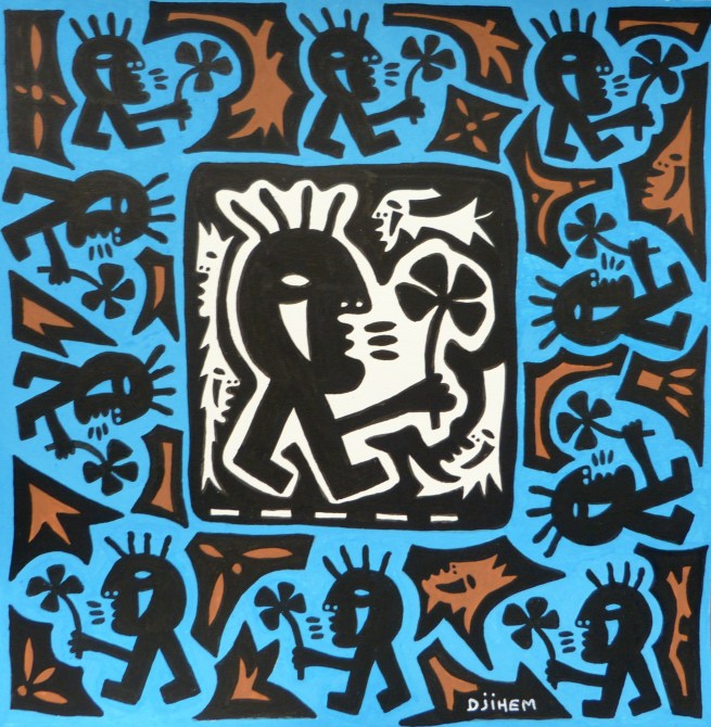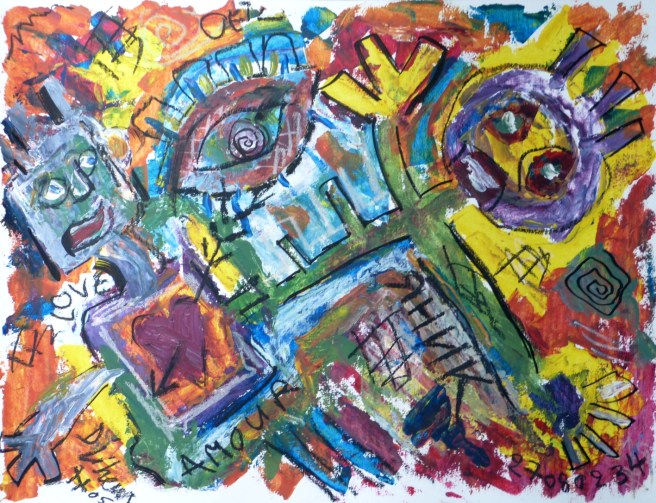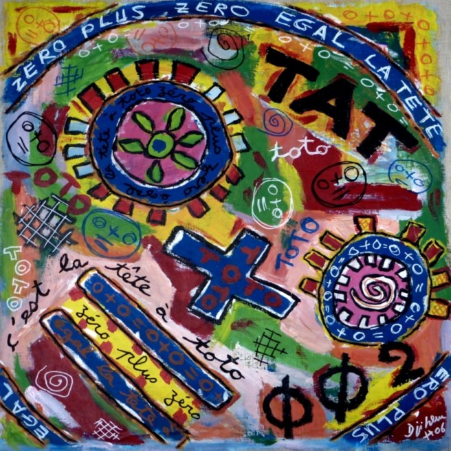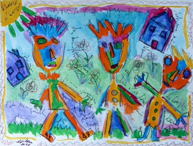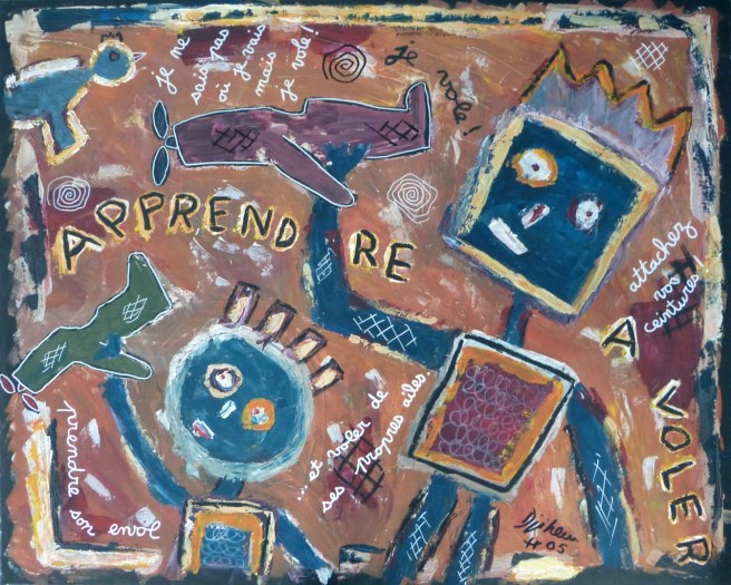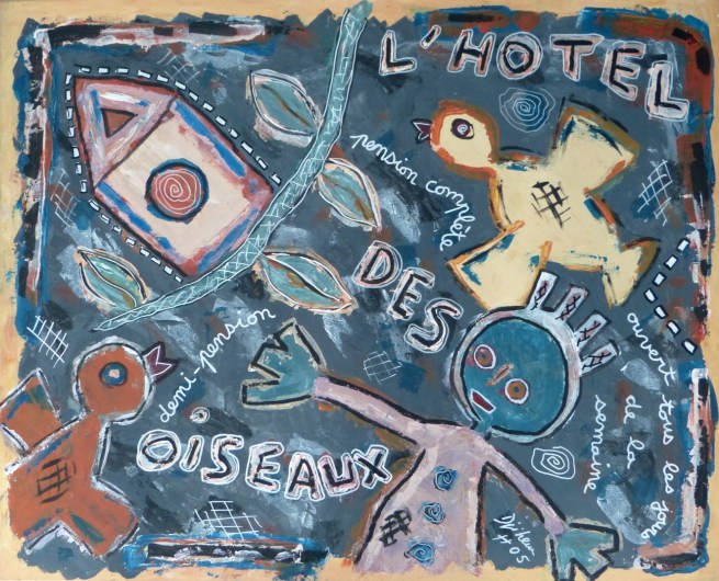 « Le chant des éoliennes », posca sur papier fort, 30 x 30 cm, 2013Sans titre, posca sur papier fort, 15 x 15 cm, 2013« Tête à Toto 002 », acrylique sur toile, 60 x 65 cm, 2006« L’œuvre éphémère », acrylique sur toile, 64 x 66 cm, 2006« Ils s’M », technique mixte sur toile, 92 x 73 cm, 2005« L’Hôtel des oiseaux », acrylique sur toile, 81 x 100 cm, 2005« Apprendre à voler », acrylique sur toile, 81 x 100 cm, 2005« Le rapprochement solaire », technique mixte sur papier fort, 24 x 32 cm, 2006« Loveamour », technique mixte sur papier fort, 24 x 32 cm, 2006« Les Voisins », gouache, feutres et craies sur papier fort, 24 x 32 cm, 2006« Moi vouloir être un chat », acrylique sur papier fort, 24 x 30,5 cm, 2005