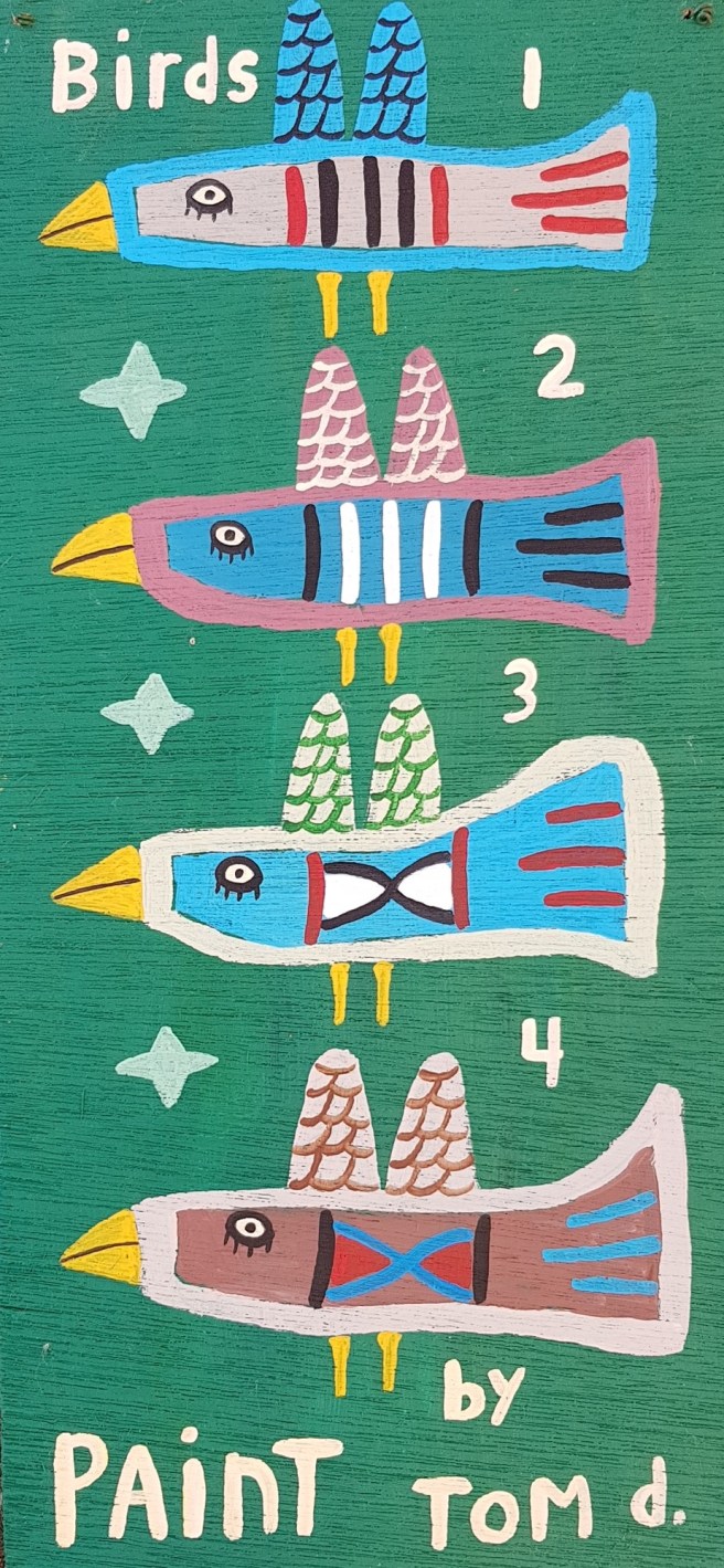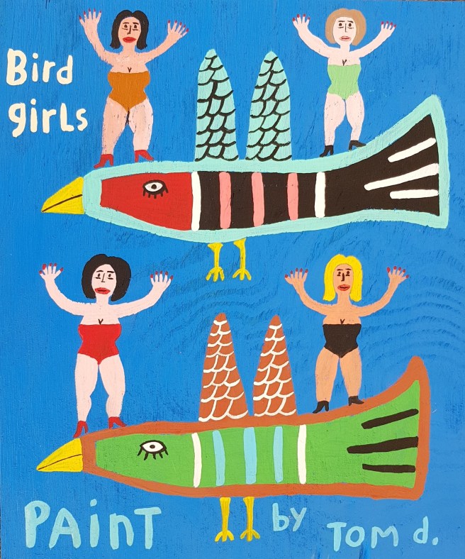 « Bird girls », acrylique sur panneau de bois, 30 x 25 cm, 2009« Owls, Birds and Dog », acrylique sur bois, 20 x 25 cm, 2009« Blue bird », acrylique sur bois, 22 x 17 cm, 2009« Bird in a Ball », acrylique sur bois, 22 x 22 cm, 2009« 4 Birds », acrylique sur panneau de bois, 46 x 18 cm, 2009« Virginia 2 », acrylique, charbon de bois, huile et encre sur papier Canson 90 gr, 2009