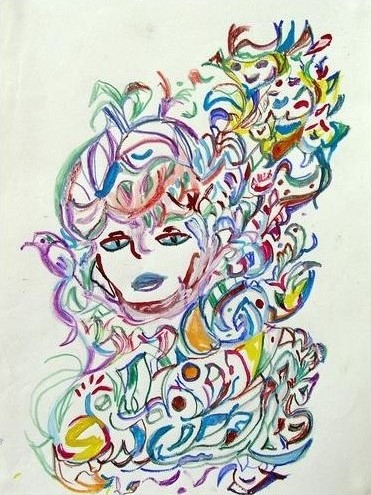 Sans titre, crayons de couleurs et gouache, 32 x 24 cm, période de réalisation 1989