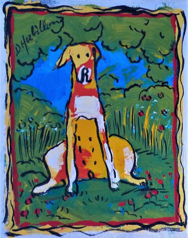 « Le chien dans l’herbe », acrylique sur toile, 23 x 18 cm