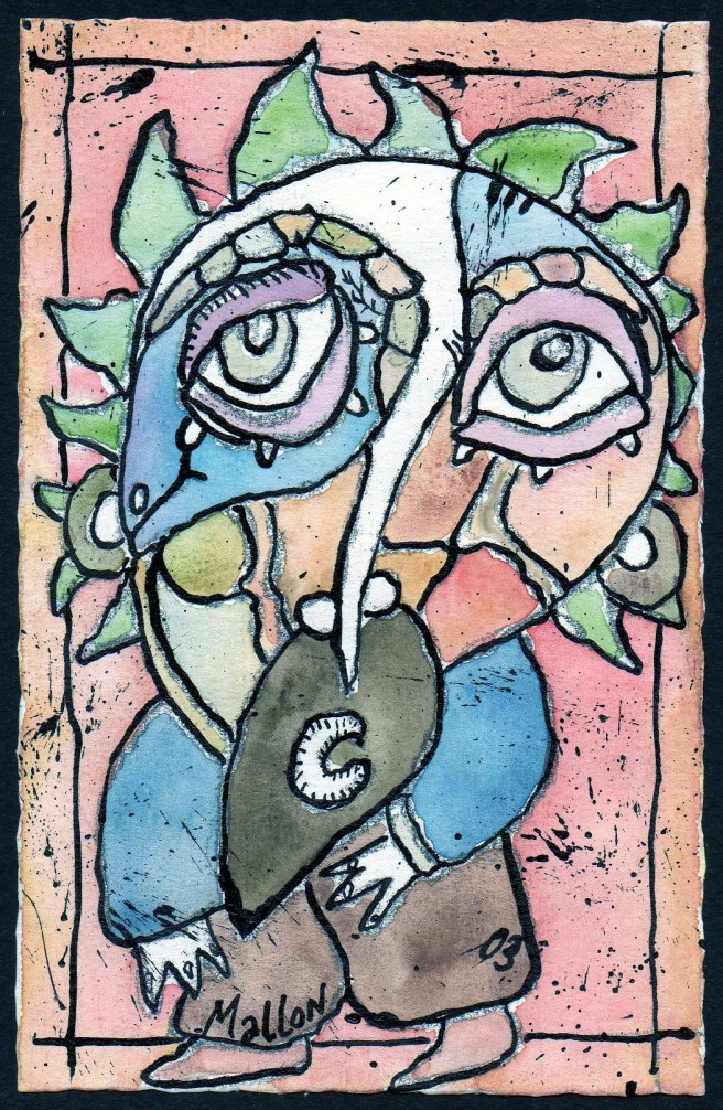 « L’oiseau dans l’œil », aquarelle et encre de Chine sur papier, 15 x 10 cm, 2003
