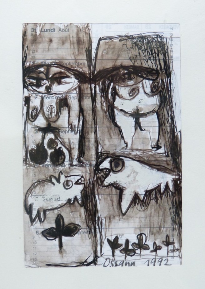 « Petites histoires », encre et gouache sur papier contrecollé sur carton, 18 x 13 cm, 1992