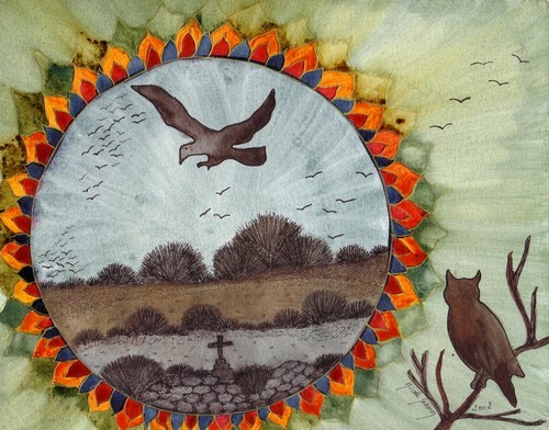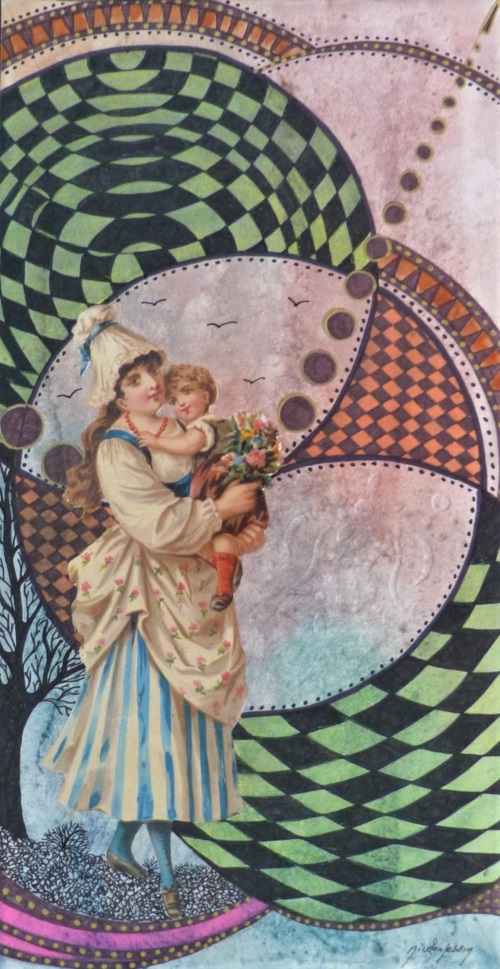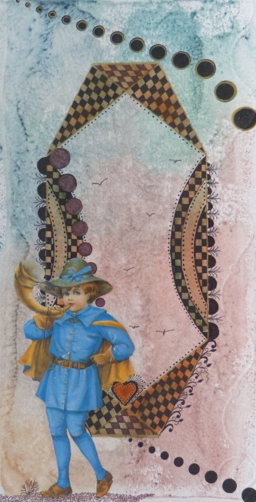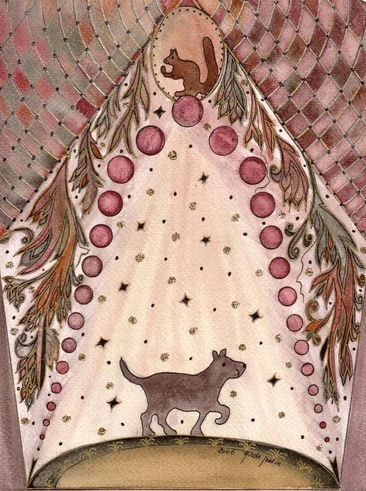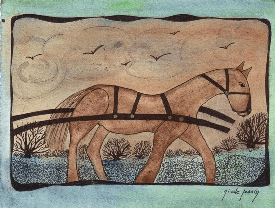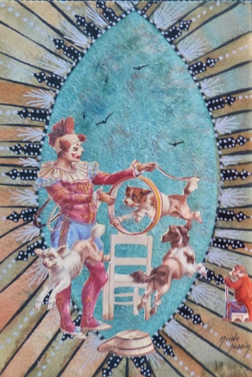 « Tour de piste », aquarelle sur papier, 24 x 18 cm, 2006« Rapace », aquarelle sur papier fort, 18,8 x 23,8 cm, 2002Sans titre, aquarelle et encre de Chine sur papier, 33,3 x 17,2 cm« Un fougueux destrier », aquarelle et encre de Chine sur papier fort, 13 x 20 cmSans titre, aquarelle et collage de chromo rehaussée couleur or sur papier fort, 21 x 10,5 cmSans titre, aquarelle et encre de Chine avec collage de chromo sur papier épais, gaufrage, 33,3 x 17,2 cmSans titre, aquarelle et encre de Chine avec collage de chromo rehaussée couleur or sur papier gaufré, 33,3 x 17,2 cm