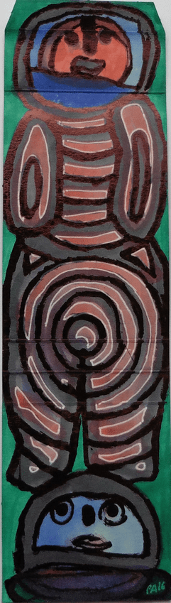 Sans titre, feutres et stylo bille sur carton d’emballage (conserve), 15 x 20 cm, 2017Sans titre, feutres et pastels à la cire sur carton d’emballage (gélules), 20 x 20,5 cm, 2016