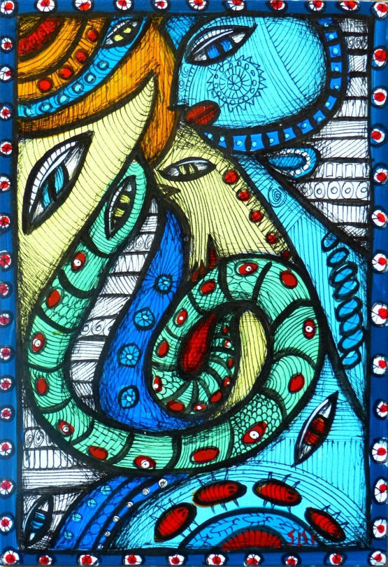 « The snake », technique mixte sur bois, 20 x 15 cm, 2009