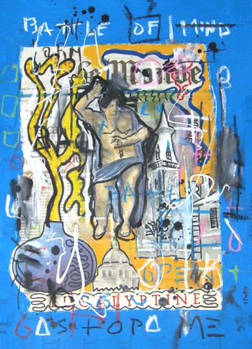 « Stop me », gouache, collages et feutres sur papier renforcé, 42 x 30 cm